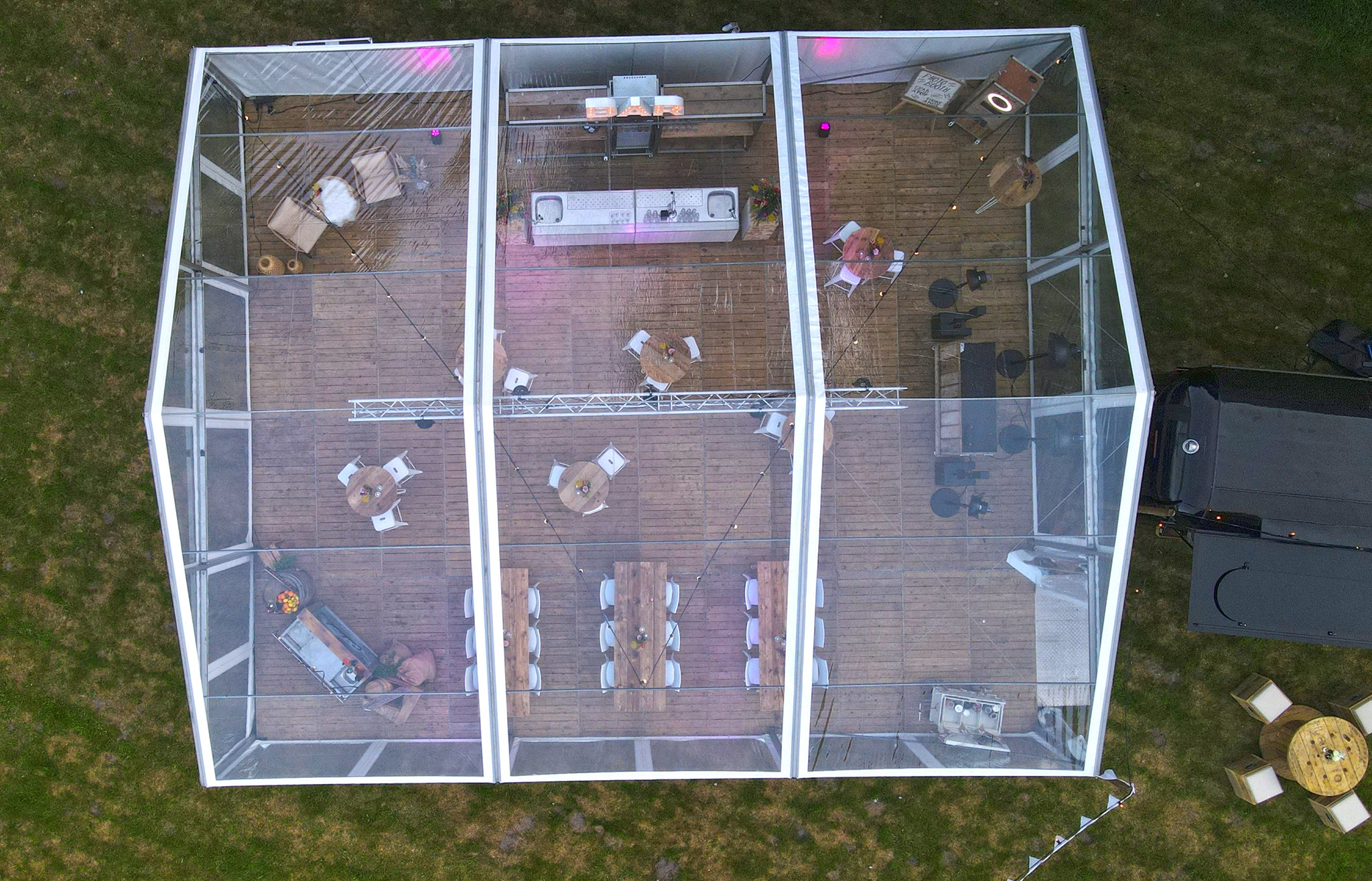 - Vrije overspanning (geen hinderlijke masten in de tent)